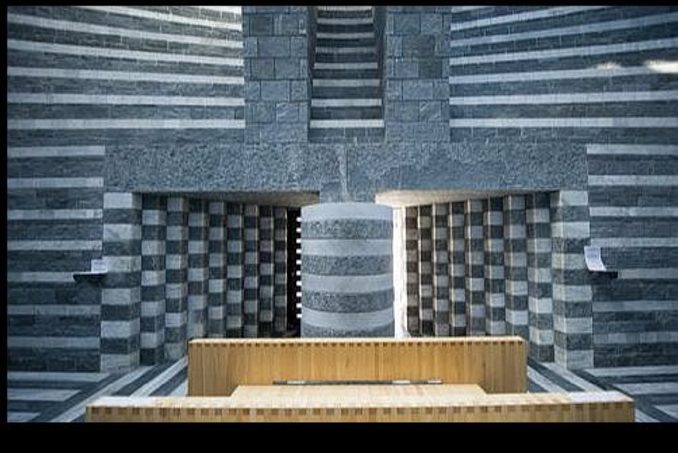 Le due acquasantiere di pietra ollare dalle Val Lavizzara, sono posate a destra e a sinistra dell'entrata nella chiesetta di San Giovanni Battista, di Mogno.