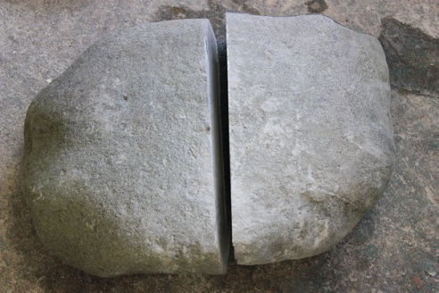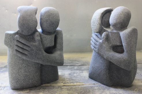 Le due statuette "abbraccio" ricavate dalle due metà.del masso di ollare.